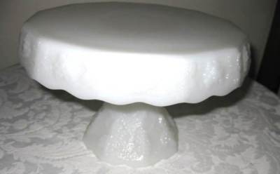 Vintage GRAPE & VINE MILK GLASS PANELED CAKE STAND!!