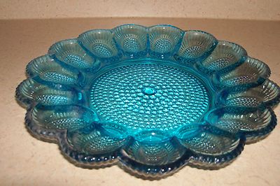 Blue Glass Deviled Egg Tray