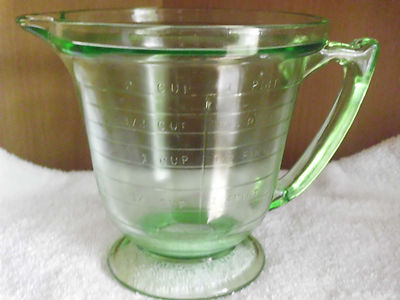 Title (ebay affiliate link): VINTAGE GREEN DEPRESSION MEASURING PITCHER "T & S HANDIMAID"