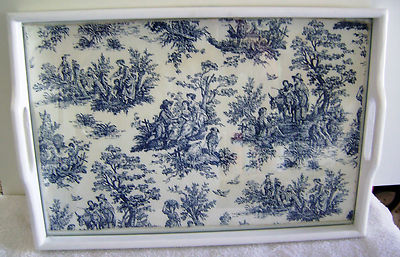 Title (ebay affiliate link): Vintage serving tray with old piece of table cloth under glass.