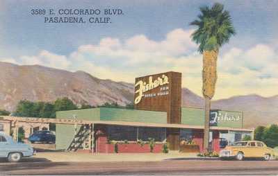 #05 1950 POSTCARD FISHERS RESTAURANT PASADENA CA