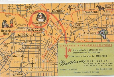 Title (ebay affiliate link): #19 1940 POSTCARD FRED HARVEY MAP OF RESTAURANTS HOLLYWOOD & SO CAL AREA