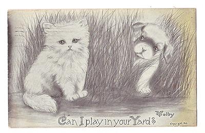 1910 Postcard Signed Artist-Vincent Colby/Puppy asking Kitten to Play-VF