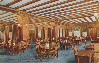 Title (ebay affiliate link): #27 1910 POSTCARD DEPT STORE MARSHALL FIELDS CHICAGO INTERIOR GRILL ROOM CORNER