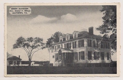 Title (ebay affiliate link): OLD MATHEWS VIRGINIA VIEW OF MRS MABEL BILLUPS TOURIST GUEST HOME GREEN MANSION