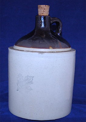 Title (ebay affiliate link): VTG. WESTERN STONEWARE 1 GAL WHISKEY JUG POTTERY CERAMIC HANDLED LEAF CORK CROCK