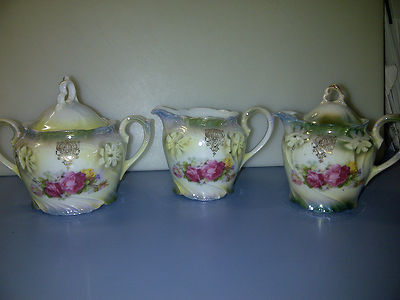 Title (ebay affiliate link): Vintage 5 Pc Set - Green with Floral Roses - Creamers and Sugar Bowl - Bavaria