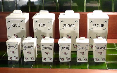 German Cream Red Green Rose Canisters "Cereal Set" 10 Pieces