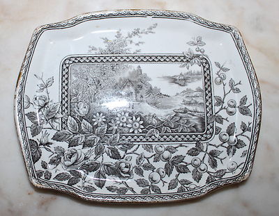 Title (ebay affiliate link): Antique transferware alton black tray gold edge rose fruit farm scene 7.5"x 6"