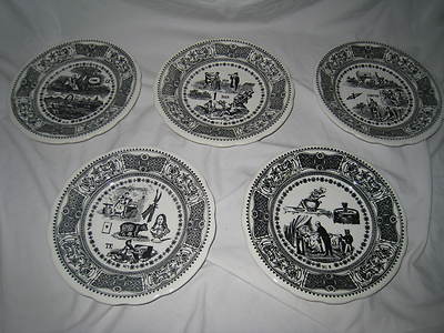 5 VINTAGE/ ANTIQUE GIEN FRANCE REBUS PICTURE PUZZLE PLATE (S)