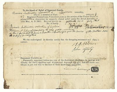 Title (ebay affiliate link): U.S.1865 Civil War era SOLDIER'S MOTHER'S RELIEF CERTIFICATE Pennsylvania 1865
