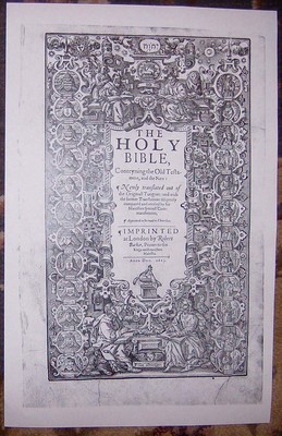 Title (ebay affiliate link): 1613 King James Folio Bible General Title in facsimile!