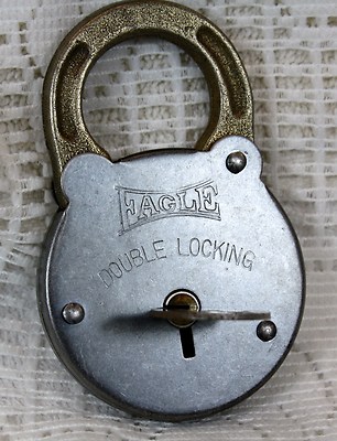 Title (ebay affiliate link): Vintage Double Locking Eagle Padlock, Brass Shackle With Gun Metal Look