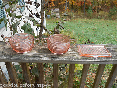 Title (ebay affiliate link): 3 PC Pink Depression Glass Sugar Bowls Butter Dish Bottom Plate Manhattan