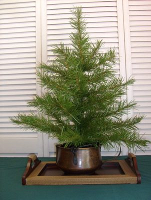Title (ebay affiliate link): ~*~PRIMITIVE, MAKE-DO, COUNTRY CHRISTMAS TREE GATHERING:TREE, TRAY, METAL POT