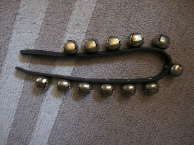 Title (ebay affiliate link): Vintage Antique BRASS Christmas SLEIGH 12 lg BELLs w 30" Leather Belt Strap Xmas