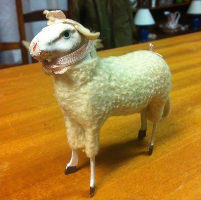 Title (ebay affiliate link): Antique German Putz Wooly Sheep Composition Figurine Holiday Nativity