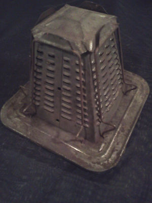 Title (ebay affiliate link): VINTAGE TIN TOASTER STOVE TOP CAMP FIRE 4 SLICE OLD ANTIQUE BREAD WARMER