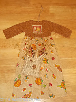 Primitive Folk Art AUTUMN DOLL DRESS & CORN SACK Cupboard Knob/Peg Hanger Ornie