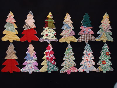 Title (ebay affiliate link): 12 PRIMITIVE VTG CUTTER QUILT CHRISTMAS TREES - FOLK ART