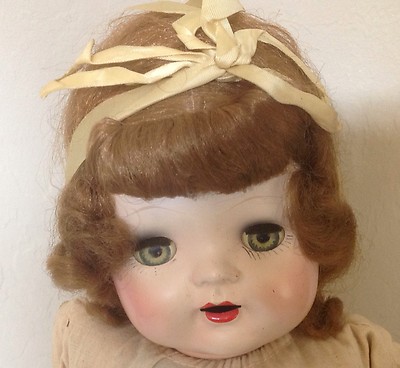 Title (ebay affiliate link): ANTIQUE VINTAGE DOLL BLINKING GREEN EYES HARD PLASTIC HEAD CLOTH BODY NO LIMBS