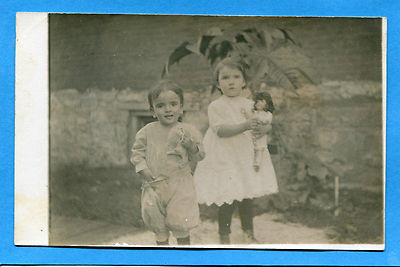 VINTAGE REAL PHOTO BOY GIRL DOLL TOY CHILDREN RPPC ANTIQUE POSTCARD
