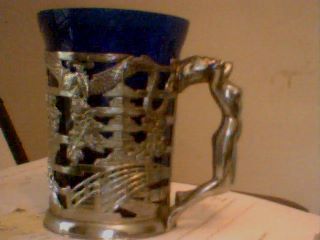 Title (ebay affiliate link): ART DECO NUDE WOMAN BEER MUG-FANCY ORNATE-COBALT BLUE GLASS