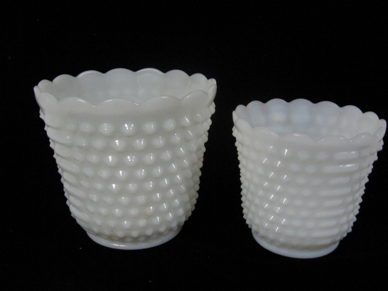 LOT OF 2 FIRE KING HOBNAIL MILK GLASS VASES/PLANTERS