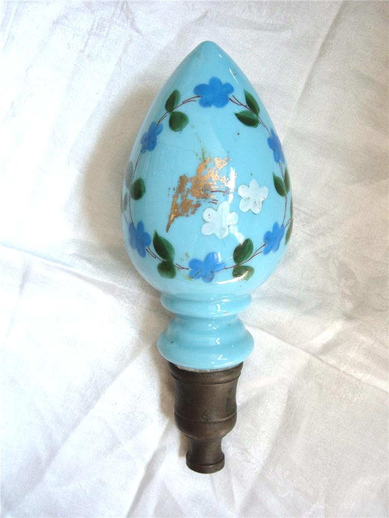 Antique Victorian Hand Paint Blue Milk Glass Egg 9"