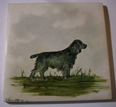 Vintage Tile Robertson Black Cocker Spaniel Dog signed Hamilton Worth Look