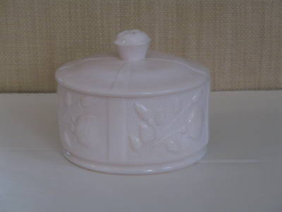 Shell Pink milk glass 2 pc. Powder Dish - perfect cond