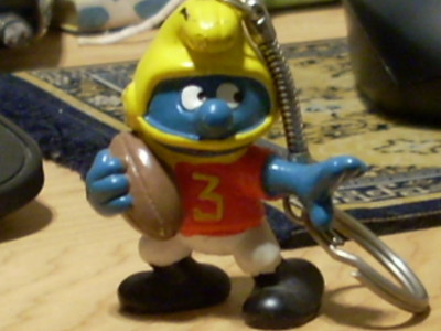 Title (ebay affiliate link): 1980 Smurf Football Keychain Schleich Made Hong Kong PEYO W. Berrie Co. Vintage