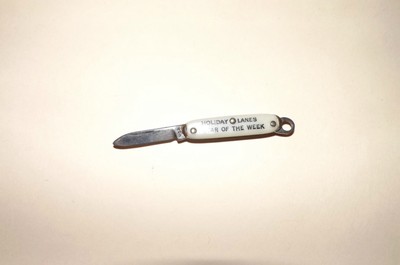 mini vintage keychain pocket knife USA holiday lanes star of the week bowling