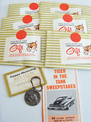 Title (ebay affiliate link): Lot of Enco "Tiger-in-the-Tank" Sweepstakes gifts, keychains; vintage 1964-1965