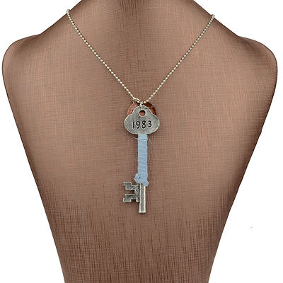 Title (ebay affiliate link): Rare Vintage Pattern Fabric Tibet Silver Vivid 3D Key Pendant Necklace B2654K