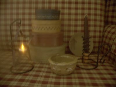 Title (ebay affiliate link): Lot: Primitive Decor: candles, stacking boxes, gingerbread man