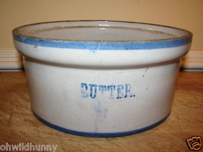 Title (ebay affiliate link): Antique Vintage Stoneware Blue & White Butter Crock, Nice Kitchen Primitive