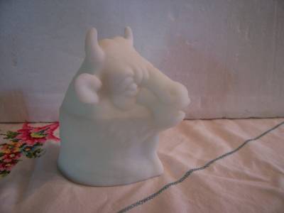 White Milk Glass Cow or Bull Head Mustard Pot, 4.25"