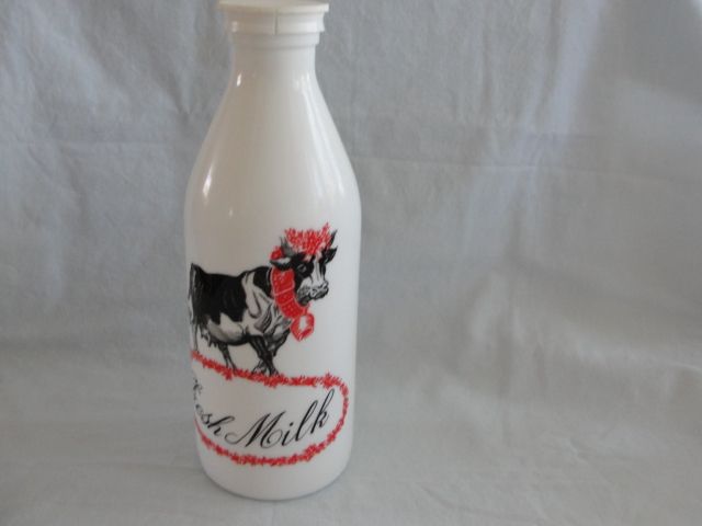 White Milk Glass Milk Bottle w/Cow - Fresh Milk