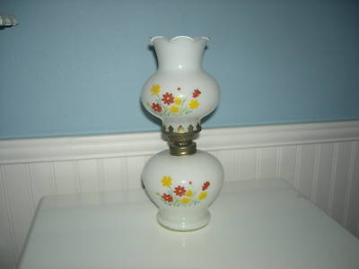 OLD VINTAGE MILK GLASS OIL LAMP 9.5" High