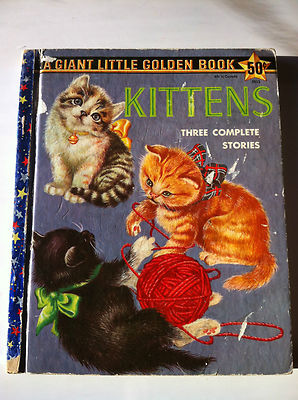 Title (ebay affiliate link): KITTENS, GIANT size Little Golden Book 5013 A First Edition 1958, 3 cat stories!
