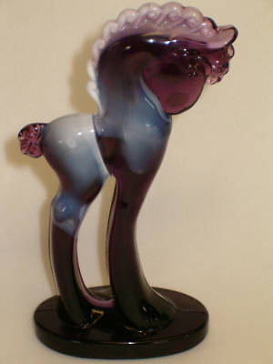 AMETHYST PURPLE AND MILK SLAG ART GLASS PONY HORSE DECO