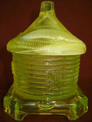 VASELINE MILK SLAG URANIUM ART GLASS HONEY BEE JAR POT