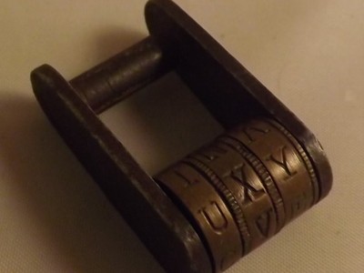 Title (ebay affiliate link): ANTIQUE GERMAN 3 WHEEL LETTER COMBINATION BRASS LOCK PADLOCK