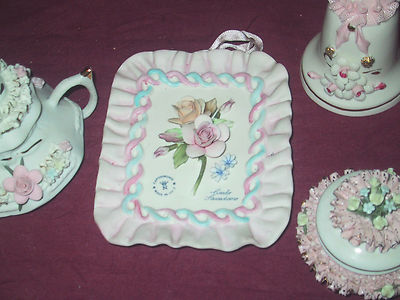 5 CARLO SAVASTANO CAPODIMONTE Plaque Ring Jars Bell Flower Tea Pot