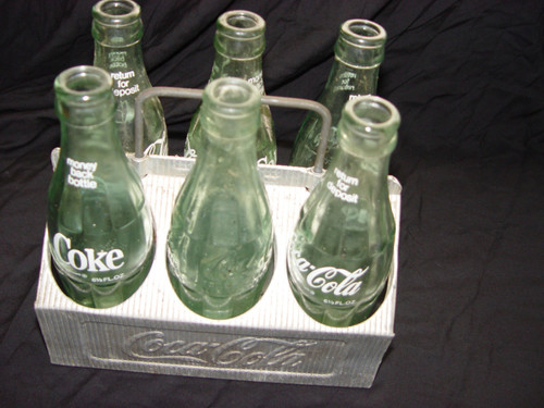 Title (ebay affiliate link): Vintage Antique Metal Coca Cola Six Pack Bottle Carrier (1940's) Green Bottles