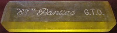 VINTAGE "68" PONTIAC GTO YELLOW CLEAR PLASTIC PAPER WEIGHT ADVERTISING