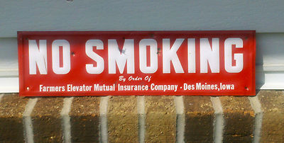 Title (ebay affiliate link): Vintage 1950s No Smoking Farmers Elevator Insurance Co. Embossed Metal Sign