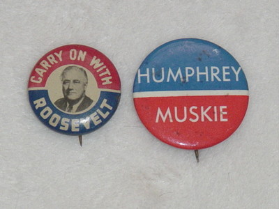 Title (ebay affiliate link): Carry on With Roosevelt Pin Pinback with Humphrey