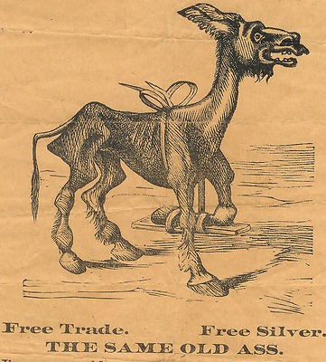 Title (ebay affiliate link): 1896 Anti WJ BRYAN Free Trade Free Silver SAME OLD ASS Political Cartoon Flyer